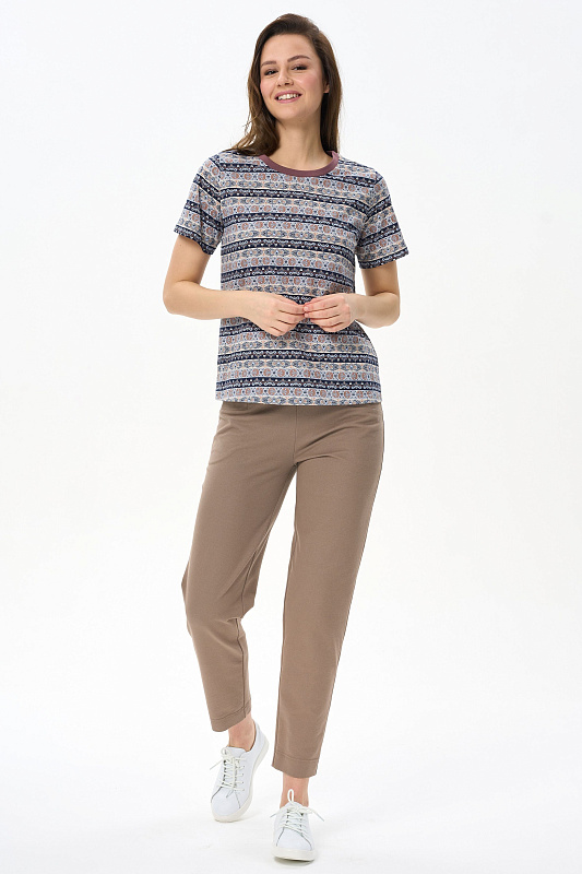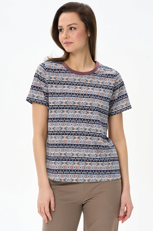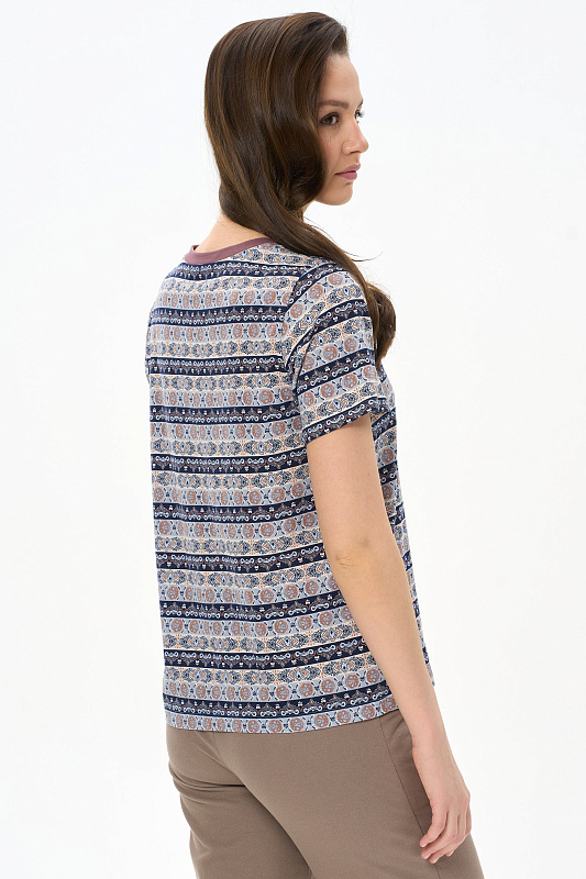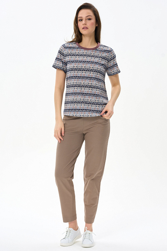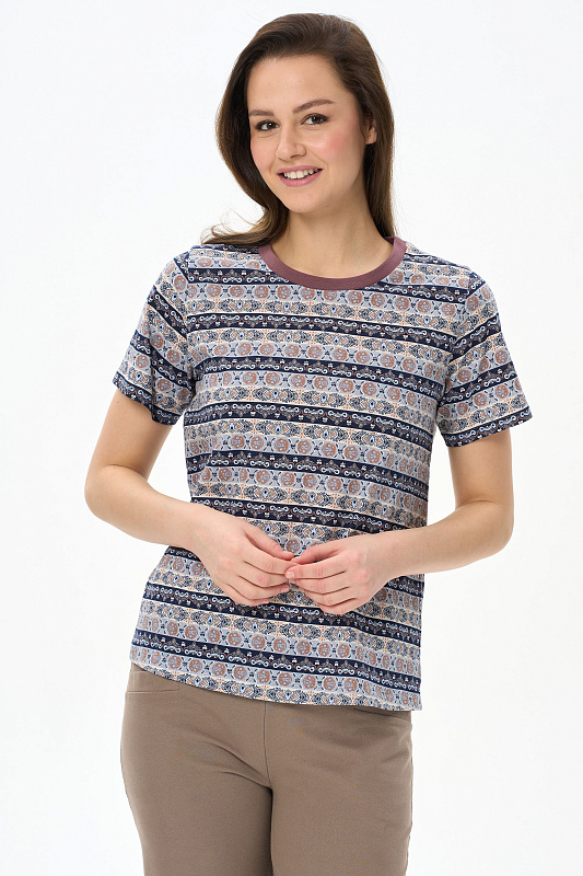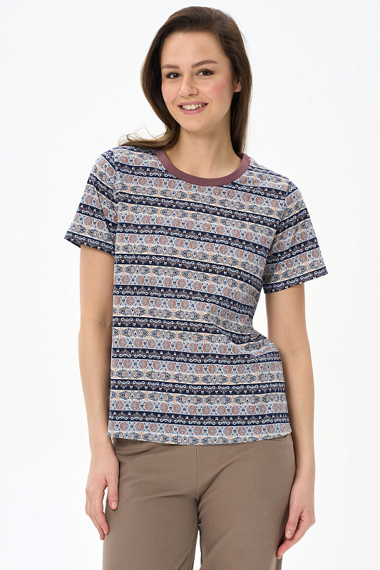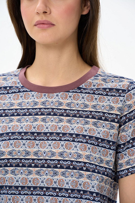 Футболка модного кроя - свободная и чуть укороченная до середины бёдер. Выполнена из хлопкового трикотажного полотна. Вырез горловины обработан хлопковым полотном - рибана. Свободный втачной рукав гармонизирует общий стиль. Рост модели на фото 178см