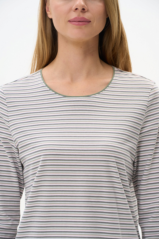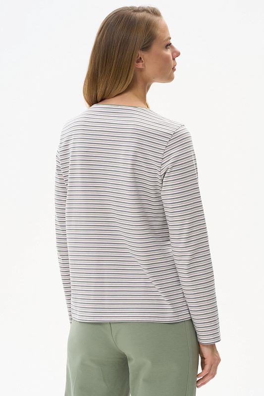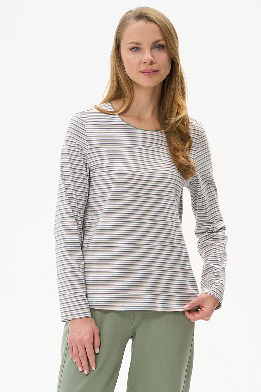 Повседневный джемпер из хлопкового полотна качества пенье. Модель с круглым вырезом горловины и длинными втачными рукавами. Рост модели 178 см
