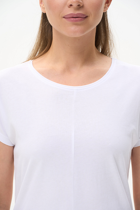 Футболка выполнена из хлопкового трикотажного полотна качества ПЕ. Круглый вырез горловины, цельнокроеные короткие рукава. Рост модели на фото 177см.