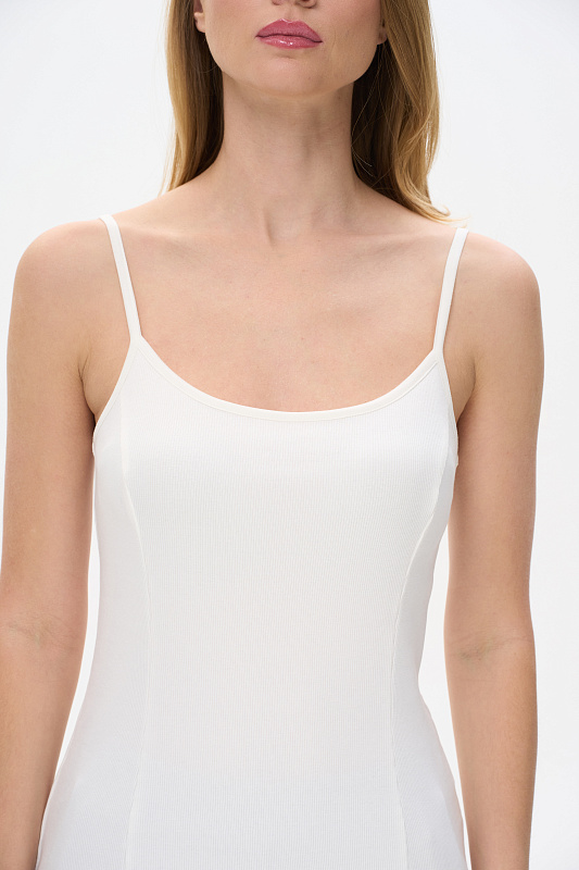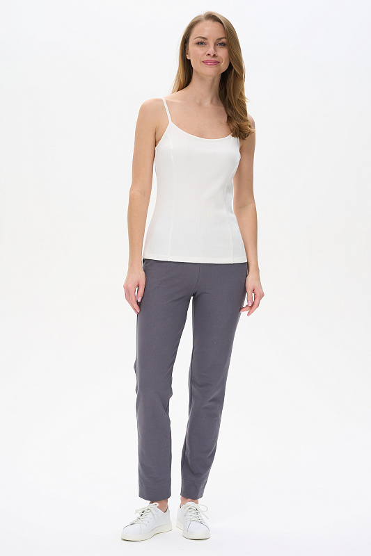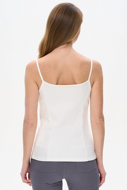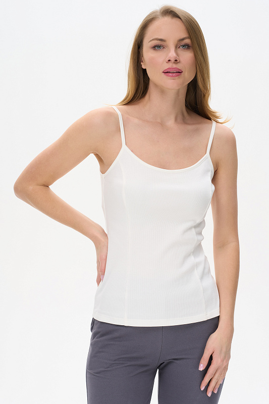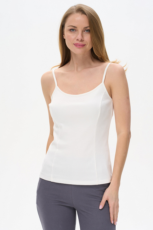 Майка выполнена из хлопкового трикотажного полотна с эластаном - кашкорсе. Модного прилегающего силуэта. Круглый вырез горловины и бретели из отделочного полотна. Рост модели на фото 178см.
