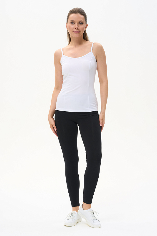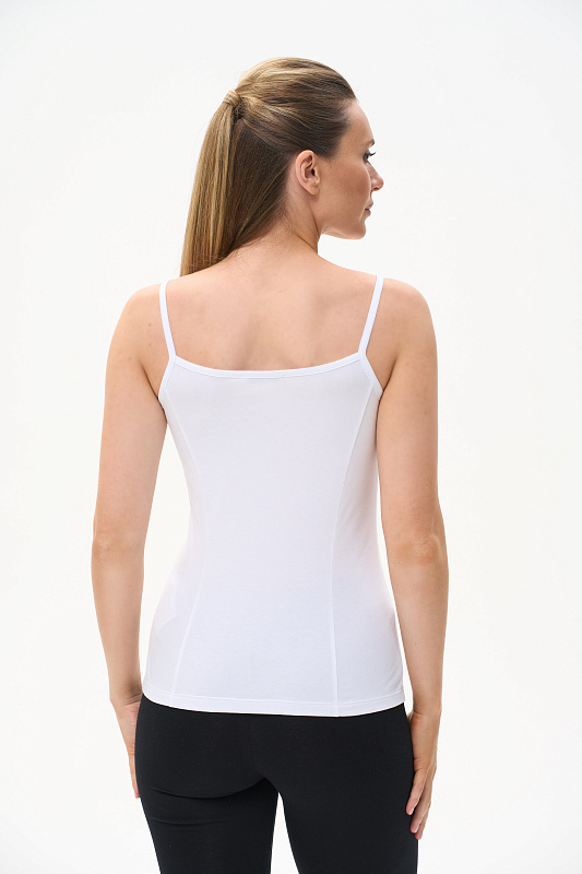 Майка на тонких бретелях из хлопкового трикотажного полотна с эластаном. Рост модели на фото 177см.