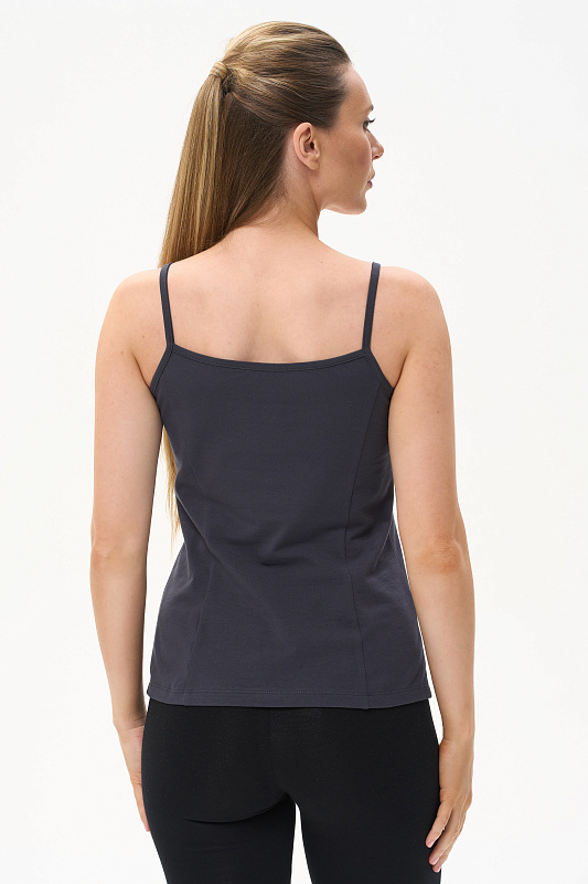 Майка на тонких бретелях из хлопкового трикотажного полотна с эластаном. Рост модели на фото 177см.