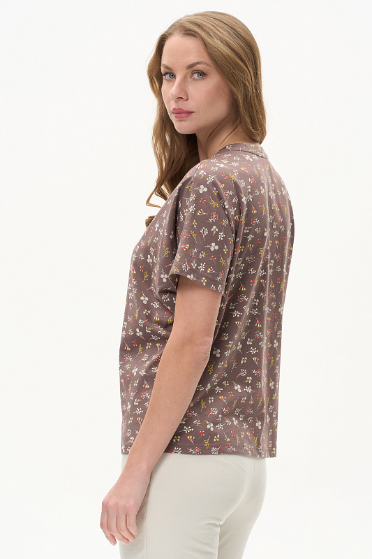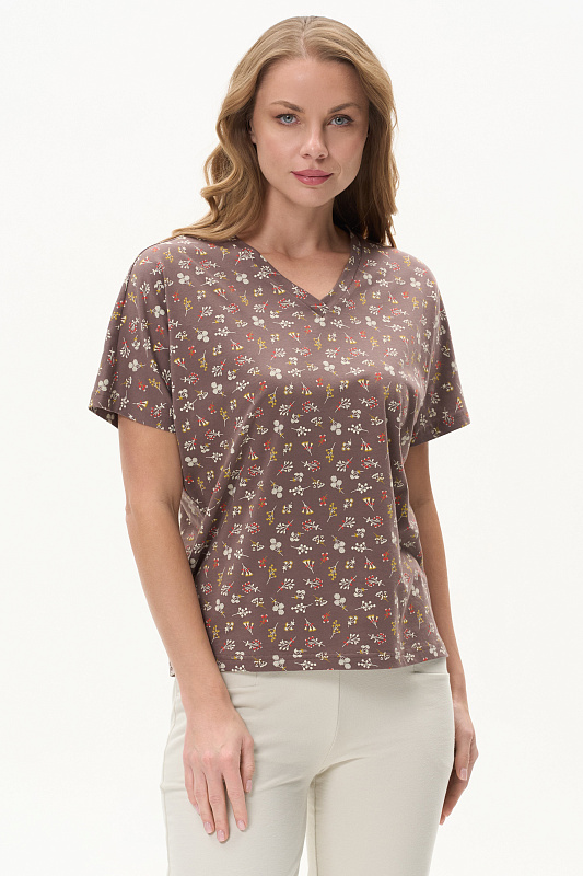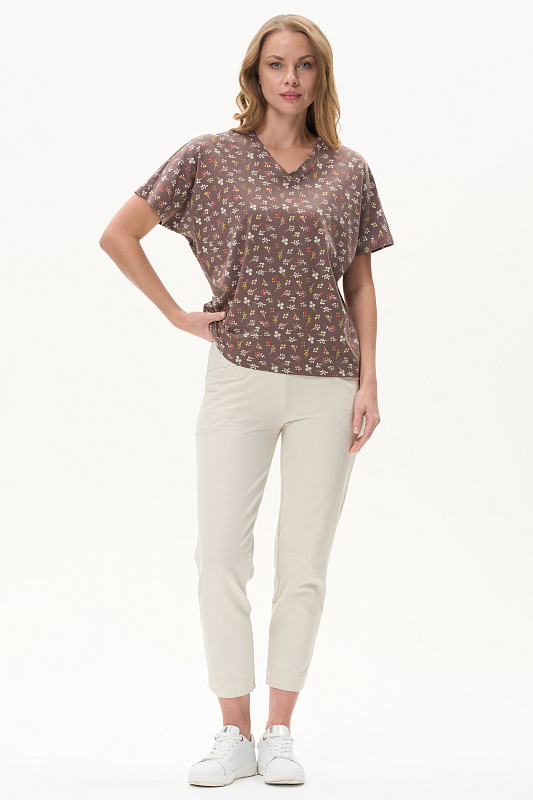 Футболка из кулирки качества ПЕ 150 гр Модель новой формы, свободная, укороченная, V-образный вырез горловины оформлен планкой, спущенное плечо, короткие цельнокроенные рукава. Удобная повседневная модель. Рост модели 175 см.