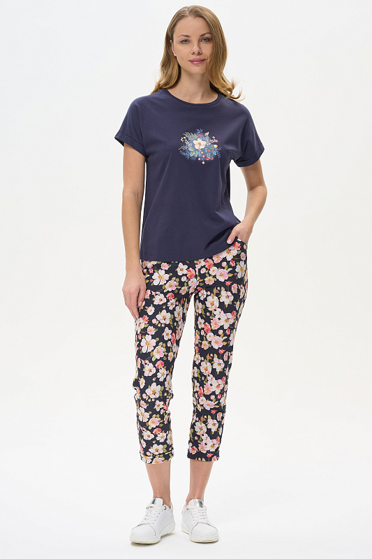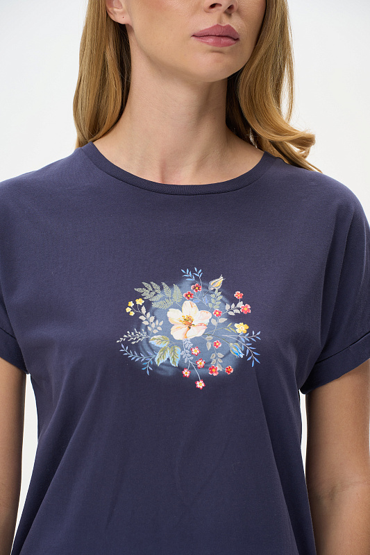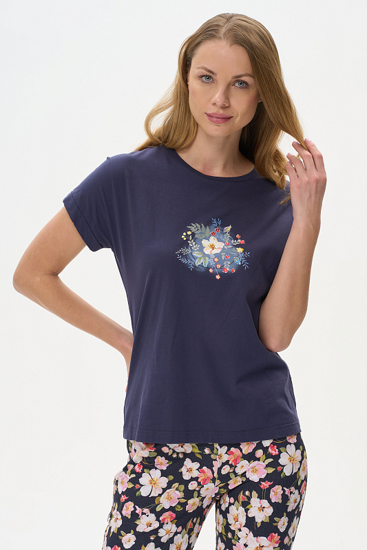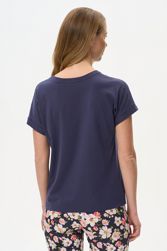 Футболка из хлопкового полотна качества пенье. Круглый вырез горловины окантован хлопковым полотном рибана. Цельнокроеные короткие рукава с отворотами. Рост модели на фото 177.