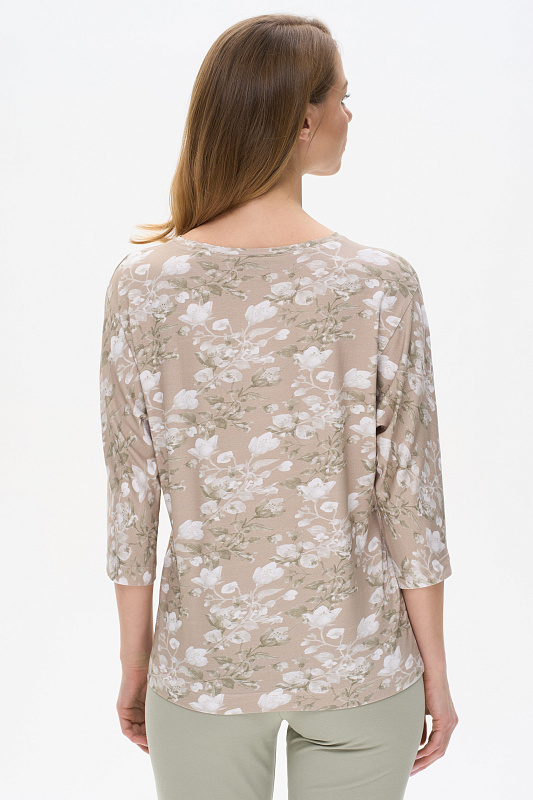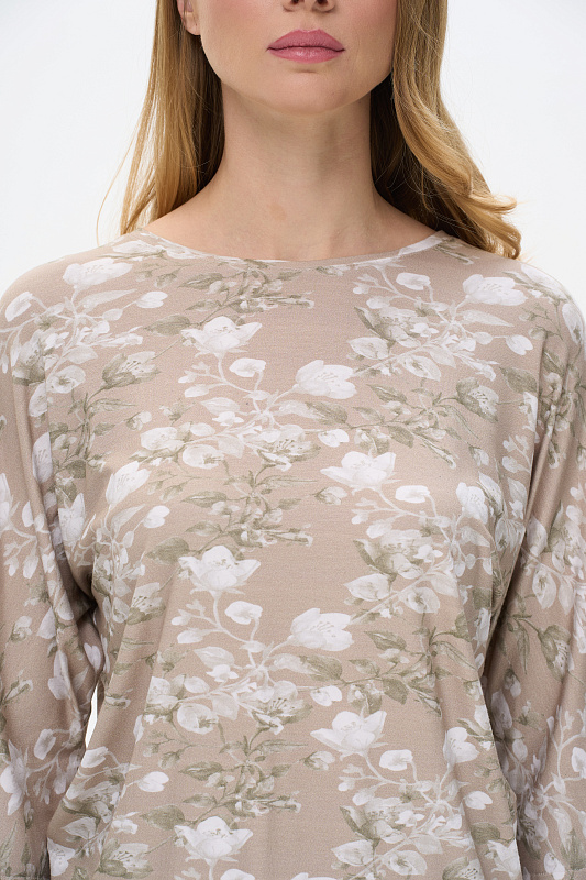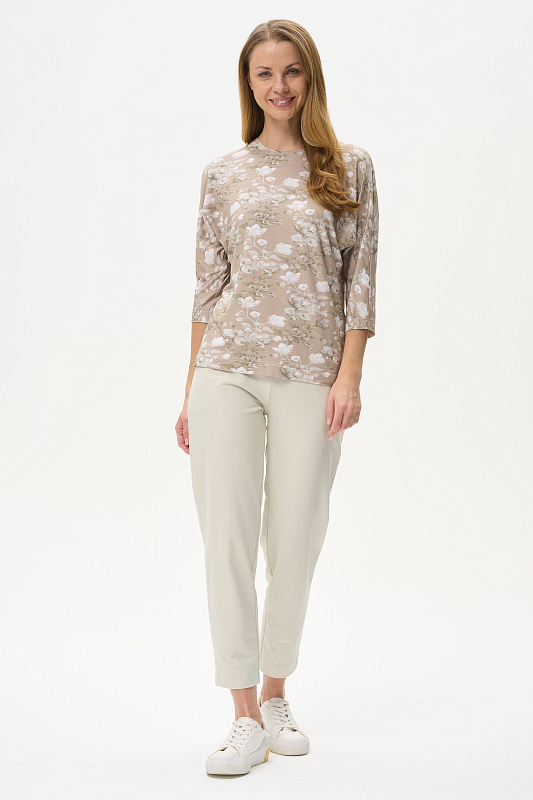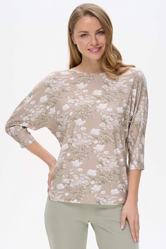 Блузка из вискозного полотна 200 гр. с Цветочным рисунком. Модель свободная, рукава цельнокроеные длиной 3/4 груглый вырез горловины. Универсальная, комфортная модель в приятной, спокойной расцветке. Рост модели 175 см.