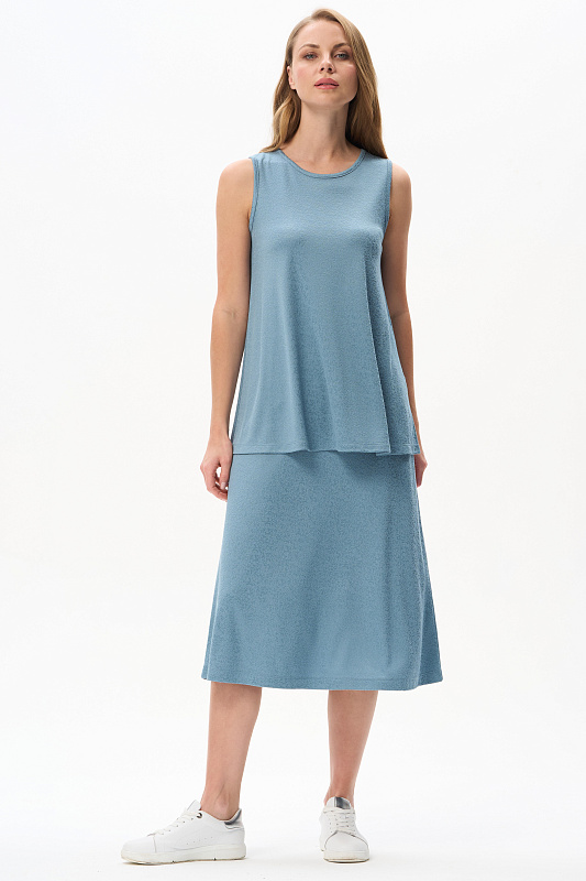 Элегантный удлинённый топ из вискозного жаккарда 230 гр с красивой фактурой и благородным блеском. Модель с круглым вырезом горловины, без рукавов, расширенный крой создаёт эффектный силуэт. Легко сочетается со многими изделиями коллекции. Рост модели 175 см.