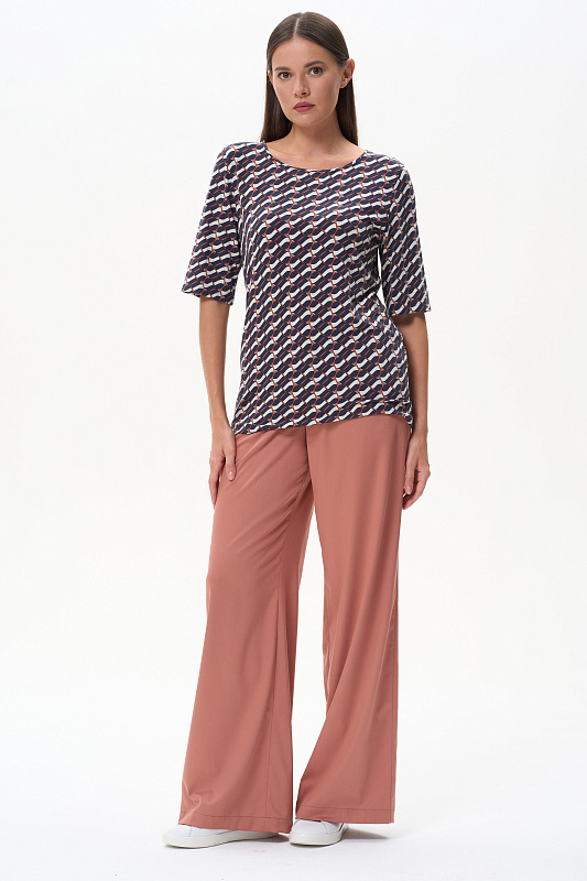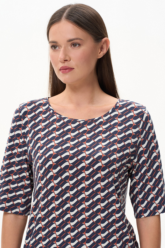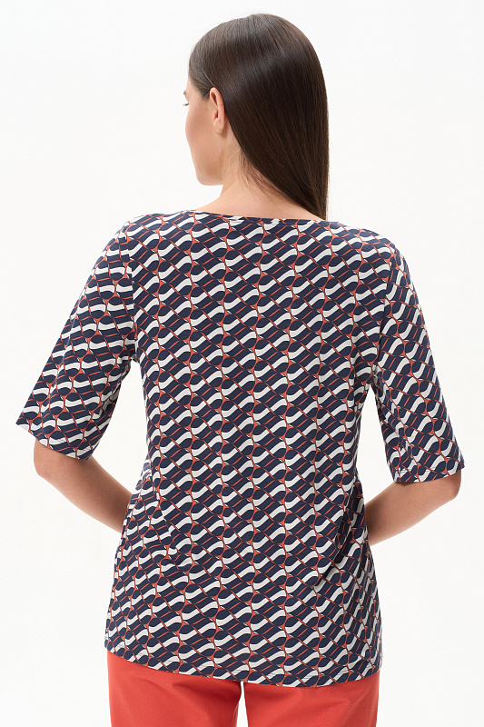 Базовая блузка из вискозы с Графическим рисунком в стиле Gucci. Втачные рукава до локтя, длина блузки закрывает паховую зону. Рост модели 175 см