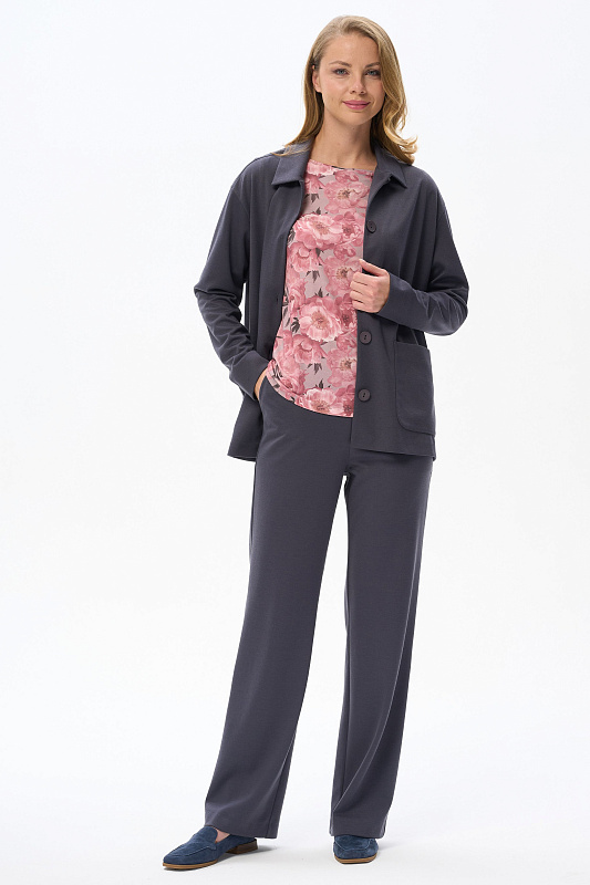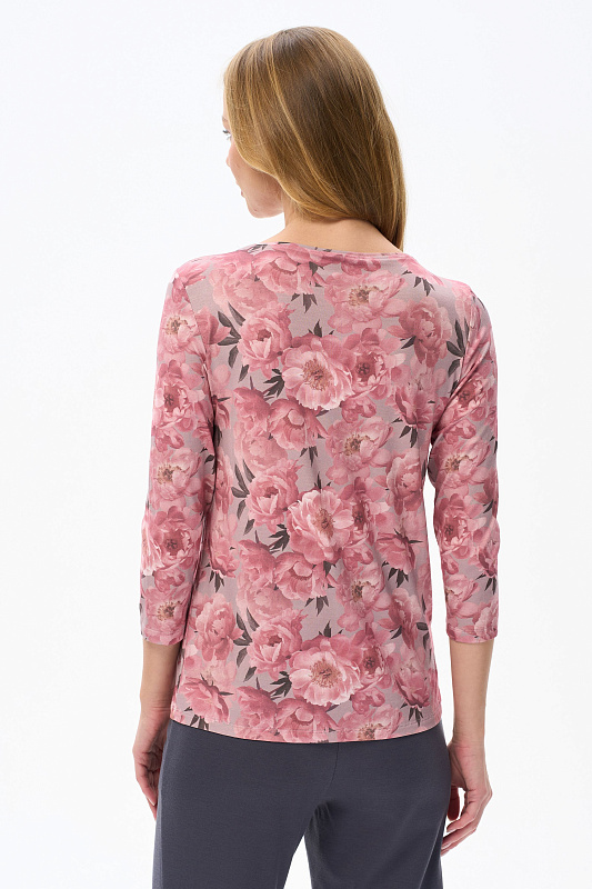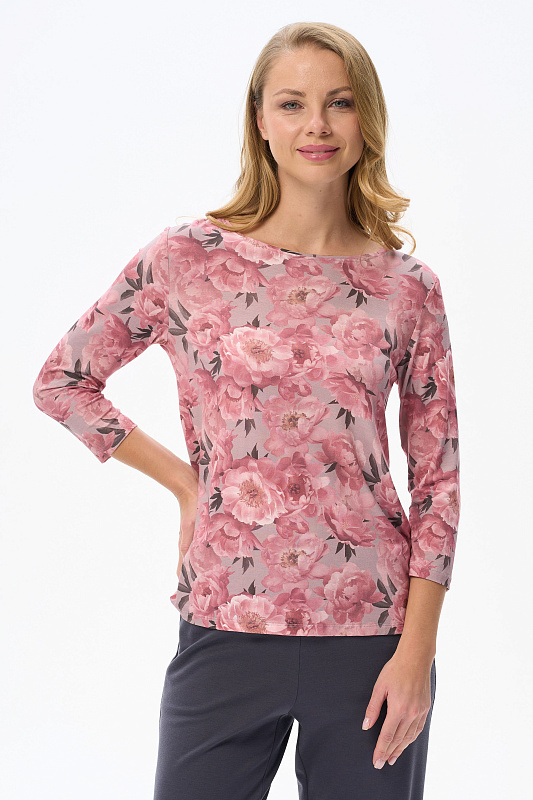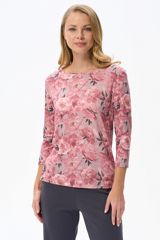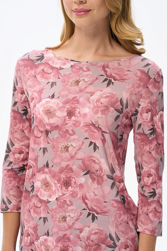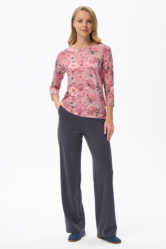 Повседневная блузка из вискозного полотна прямого покроя. Круглый вырез горловины, длинные втачные рукава. Рост модели на фото 178 см.