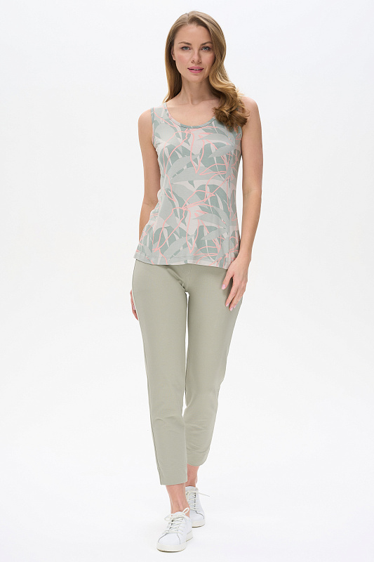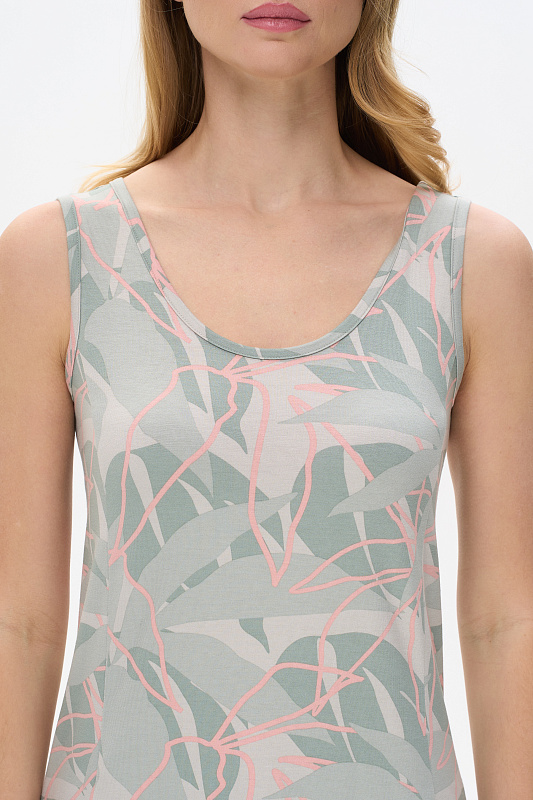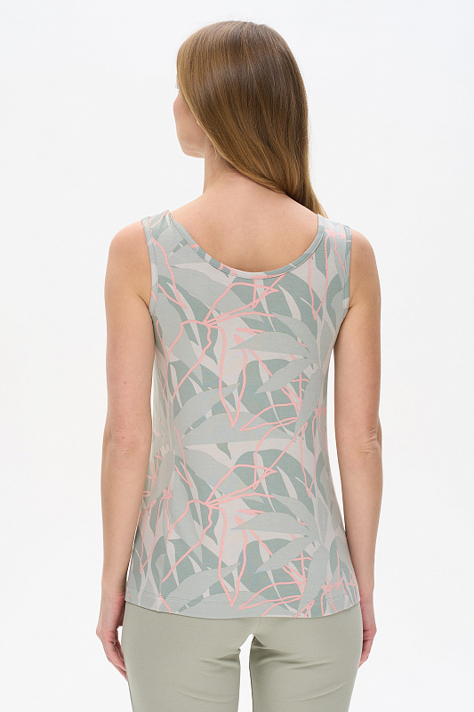 Комфортная майка из вискозного трикотажного полотна с эластаном. Круглый вырез горловины и проймы окантованы, рельефные швы. Рост модели на фото 177