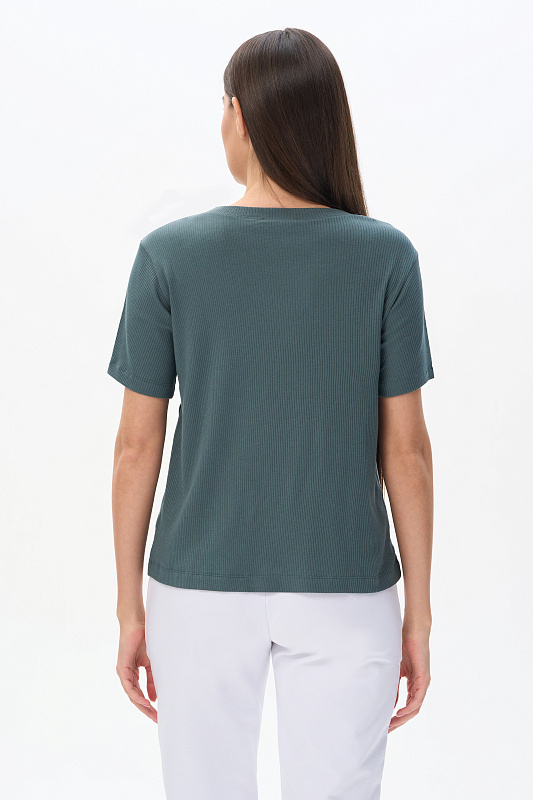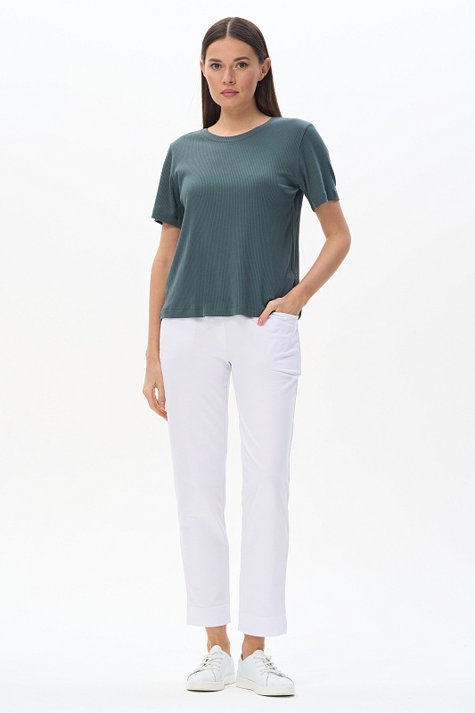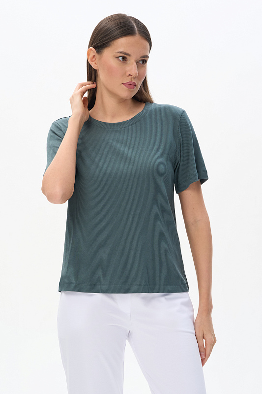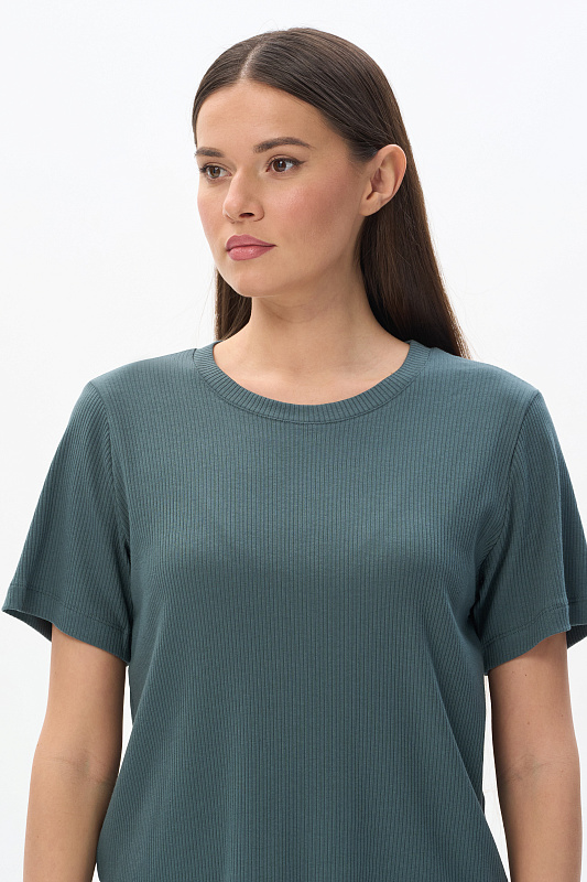 Футболка из фактурного хлопкового полотна с модалом 200 гр в оттенке Серебристая сосна. Модель свободная, прямого силуэта, круглый вырез горловины, короткие втачные рукава.Комфортная модель, не облегает фигуру, приятная к телу. Рост модели 175 см.