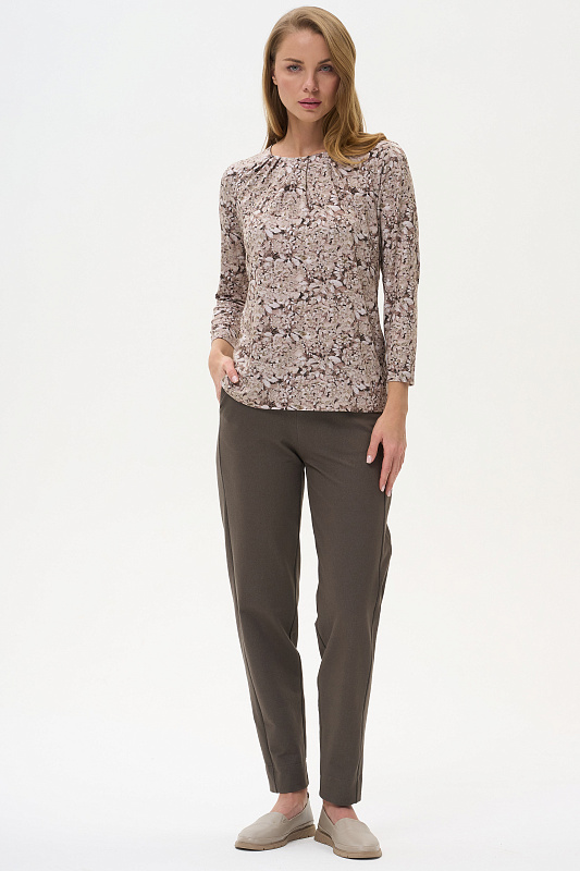 Блузка выполнена из вискозного полотна. Модель с округлой горловиной и мягкими складками. Втачные длинные рукава. Рост модели на фото 178 см.
