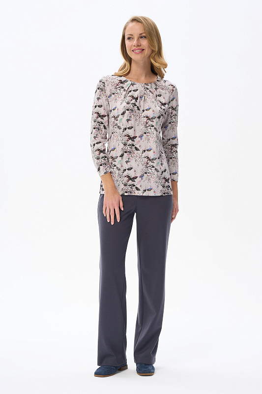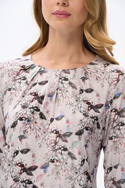Блузка выполнена из вискозного полотна. Модель с округлой горловиной и мягкими складками. Втачные длинные рукава. Рост модели на фото 175