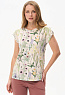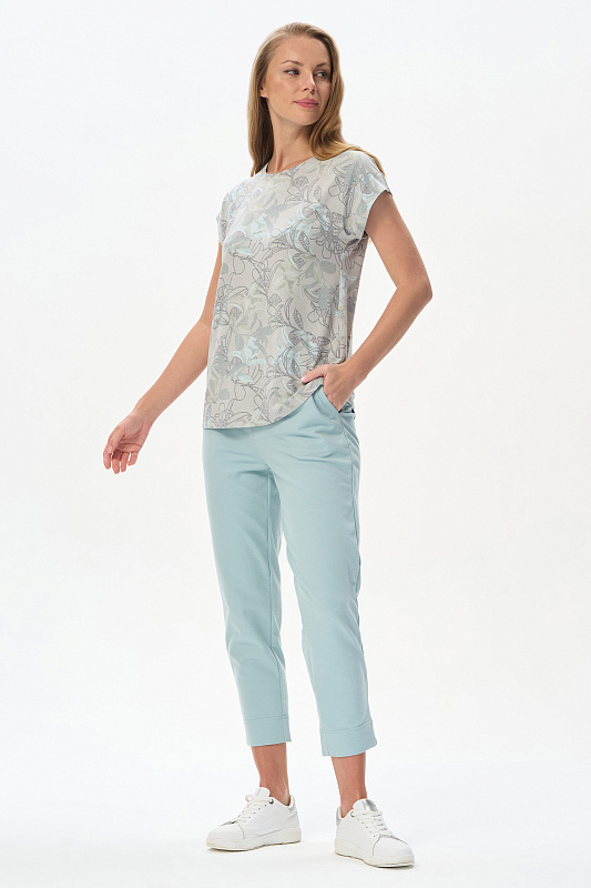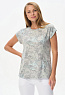 Футболка прямого силуэта из вискозного трикотажного полотна с эластаном. Круглый вырез горловины, цельнокроеные короткие рукава. Рост модели 175 см.