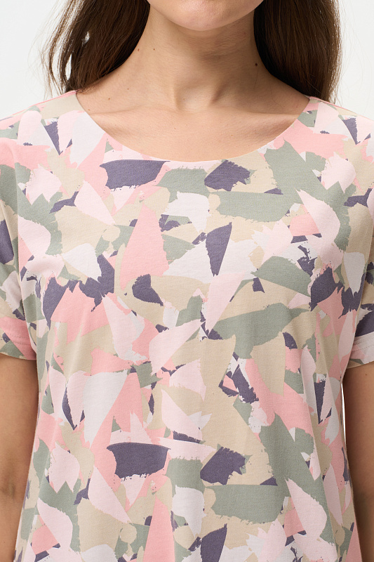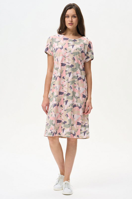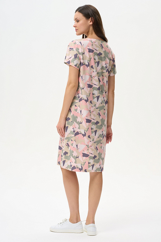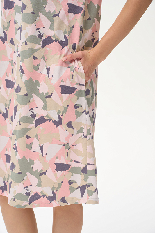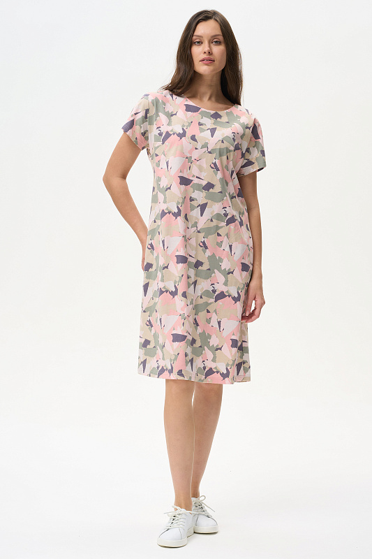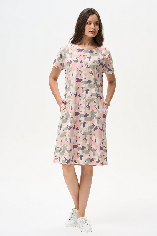 Платье прямого силуэта из кулирки 150 гр. Круглый вырез горловины, спущенная линия плеча, цельнокроенные короткие рукава, в боковых швах карманы, длина ниже колена. Комфортная модель для дома и отдыха, отлично сидит, подходит на любой тип фигуры. Рост модели 175 см