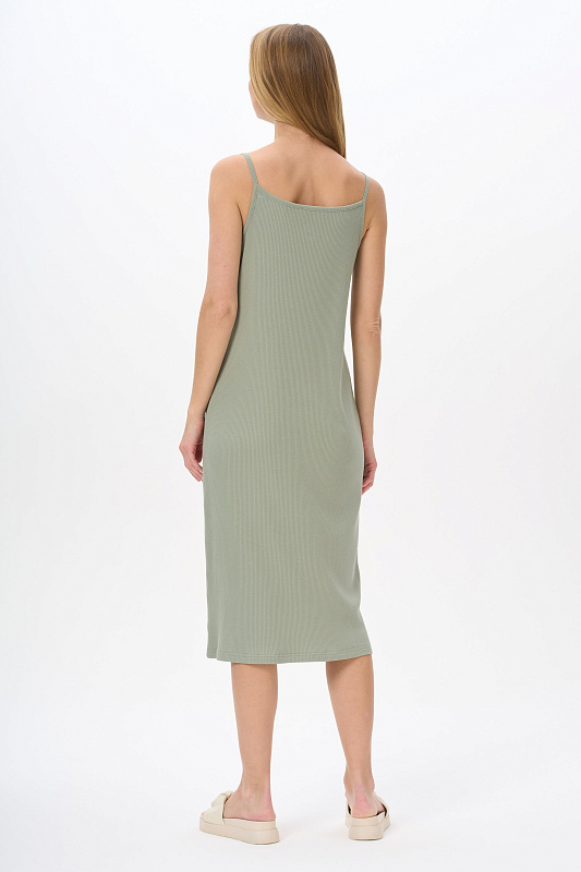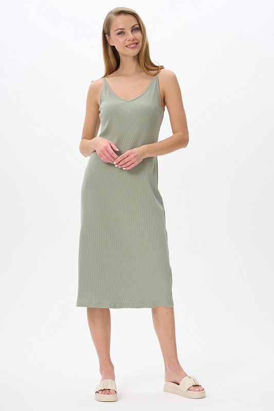 Платье прямого силуэта из фактурного хлопкового полотна с модалом. V-образный вырез горловины, длина изделия ниже колена. Рост модели на фото 170.