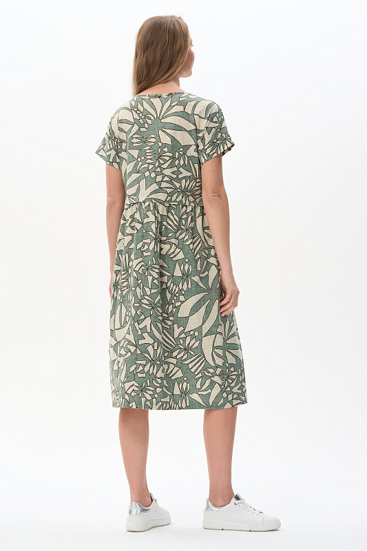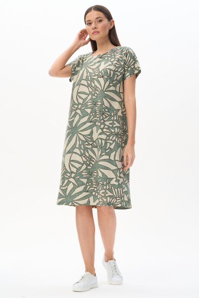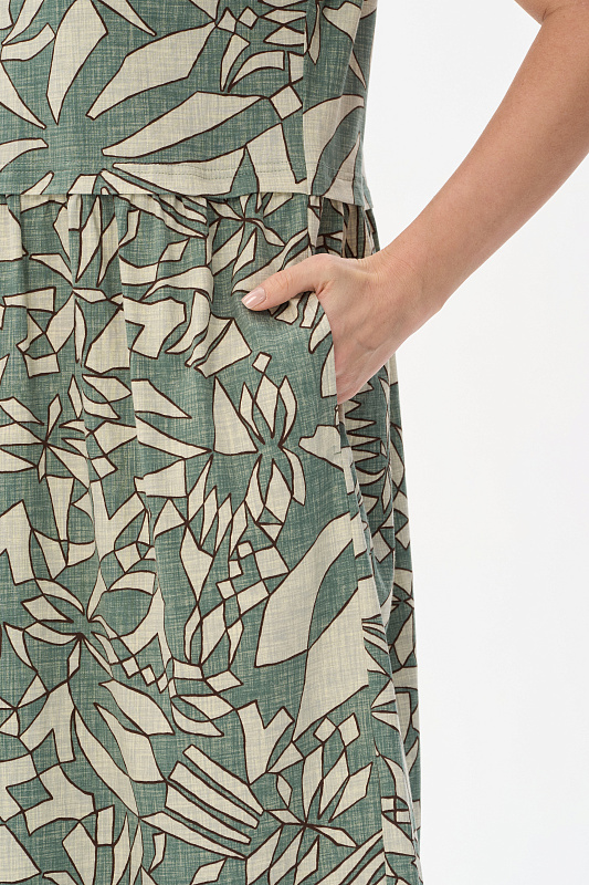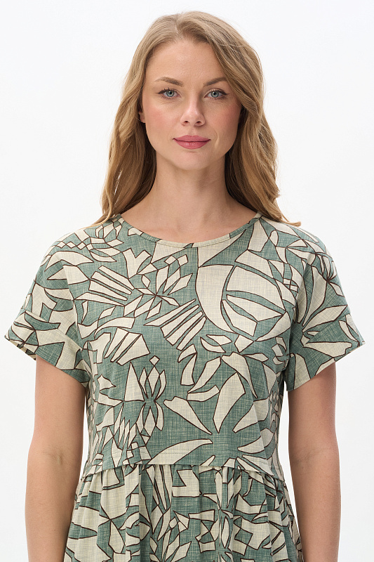Комфортное платье из хлопкового полотна качества пенье 150 гр Абстрактный рисунок в оттенках коллекции. Модель классического силуэта с чуть завышенной линией талии, с небольшой сборкой на полочке и спинке. Цельнокроеные короткие рукава с широкой планкой по низу, удобные карманы, круглый вырез обработан тонкой бейкой. Лёгкое, удобное платье на жаркие дни. Рост модели 175 см.