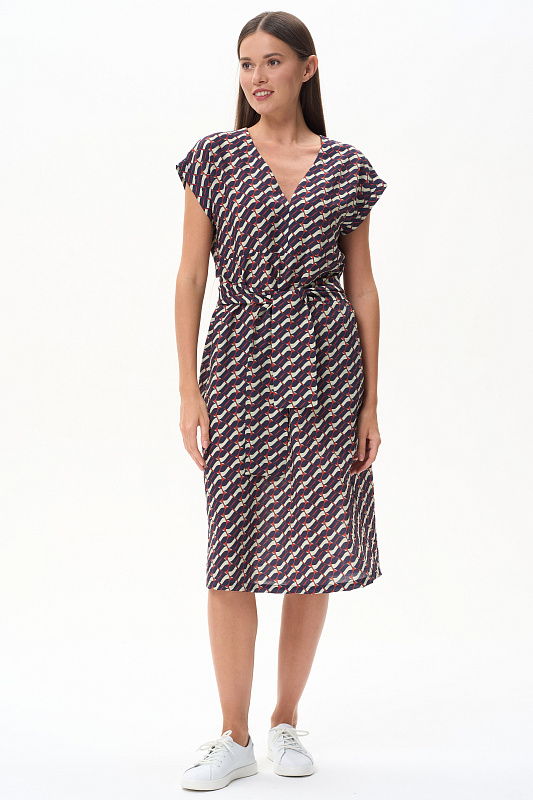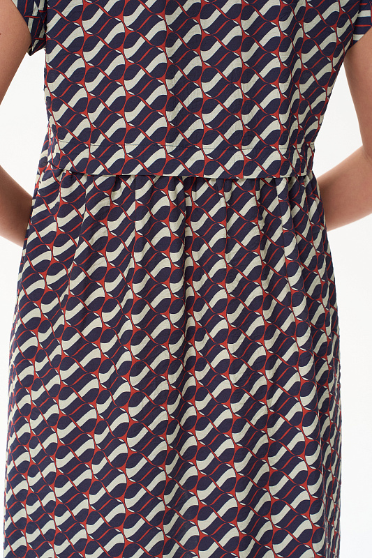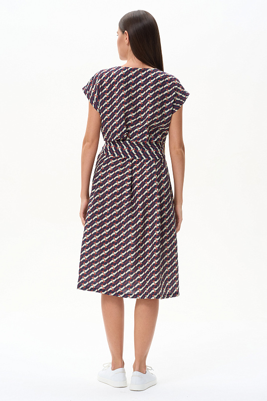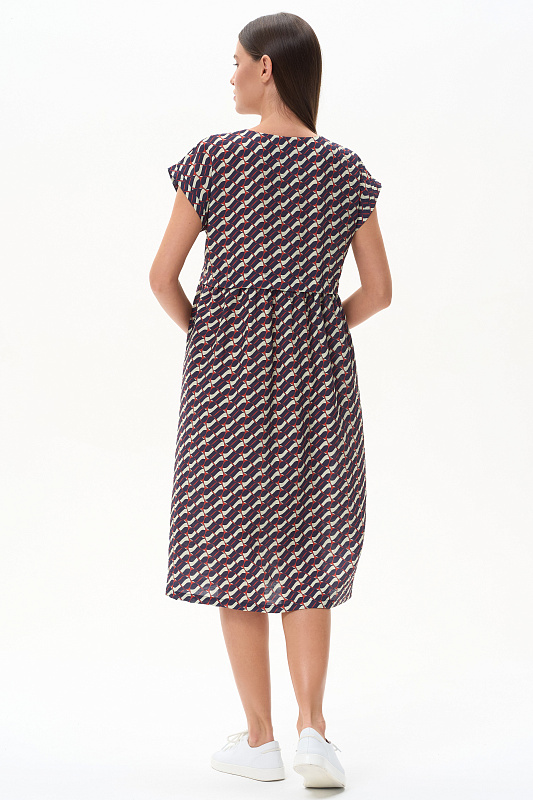 Платье из легкой плательной ткани с Графическим рисунком в стиле Gucci. Модель силуэта легкая трапеция, на спинке подрез от которого идут сборки. Благодаря такой конструкции мы получили летящий и модный силуэт. Глубокий вырез придает особую женственность модели. Рост модели 175 см