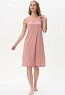 Ночная сорочка полуприлегающего силуэта без рукавов из хлопкового полотна. Круглый вырез горловины и проймы окантованы и декорированы фестонами. Длина изделия по колено. Рост модели на фото 177см.