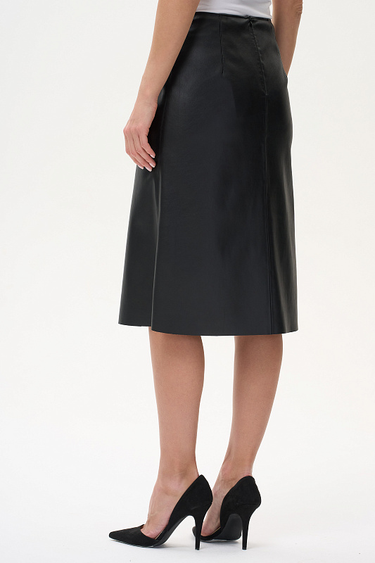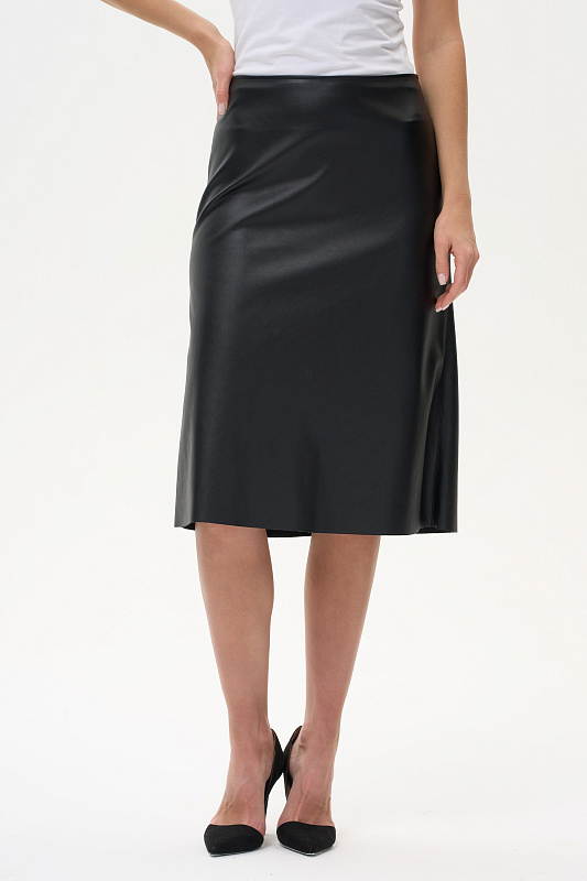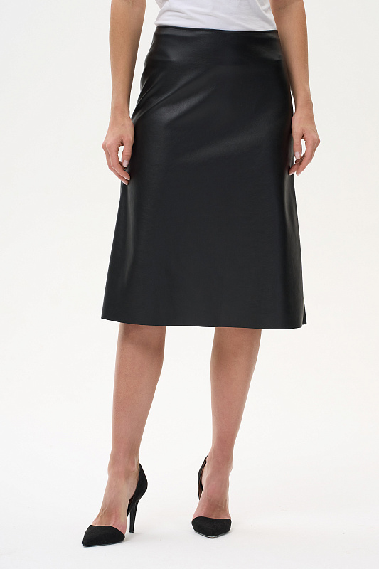 Юбка на подкладке, с обрезной линией низа. Силуэт - легкая трапеция.
