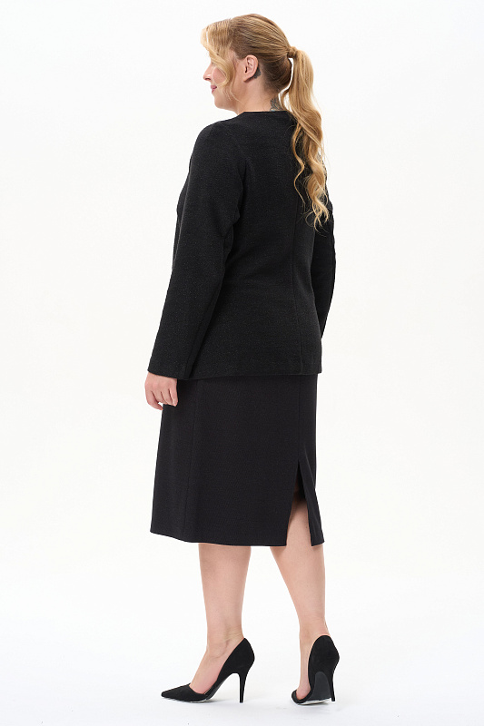 Прямая юбка длиной до колен с застёжкой на молнию, с красивой фактурной поверхностью и деликатным блеском. Элегантная модель для офиса и особых случаев.