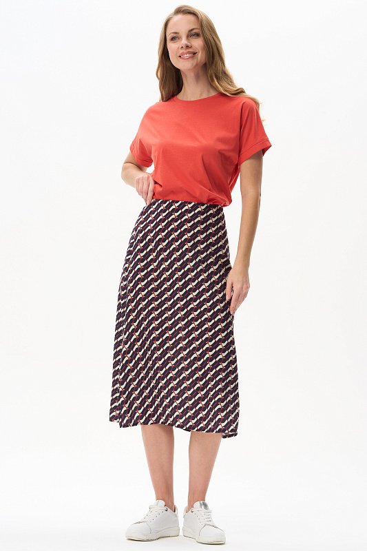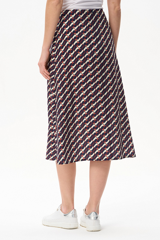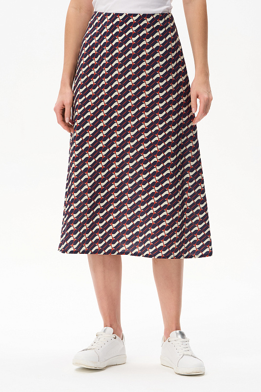 Юбка из легкой плательной ткани с Графическим рисунком в стиле Gucci. Модель А-силуэта, без пояса, застежка на молнию сзади. Рост модели 175 см.